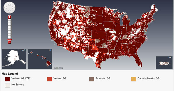 Overlaying 4G & LTE coverage for AT&T and Verizon (our two top recommended carriers for